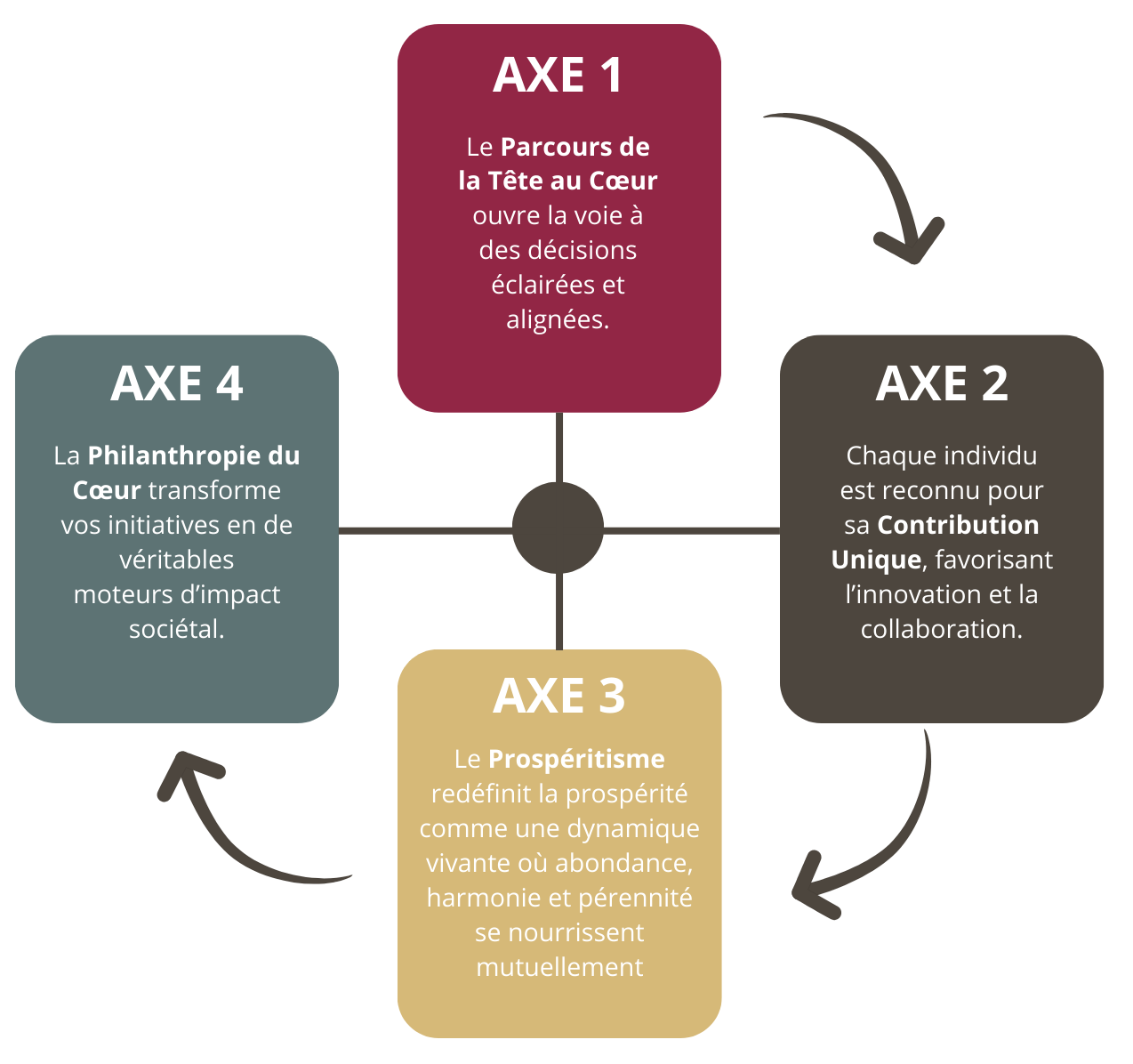Ensemble, ces axes forment un nouveau souffle, un Nouveau Paradigme en Affaires. Un espace où l’entreprise ne cherche plus à réussir, car elle se met à vibrer avec justesse.